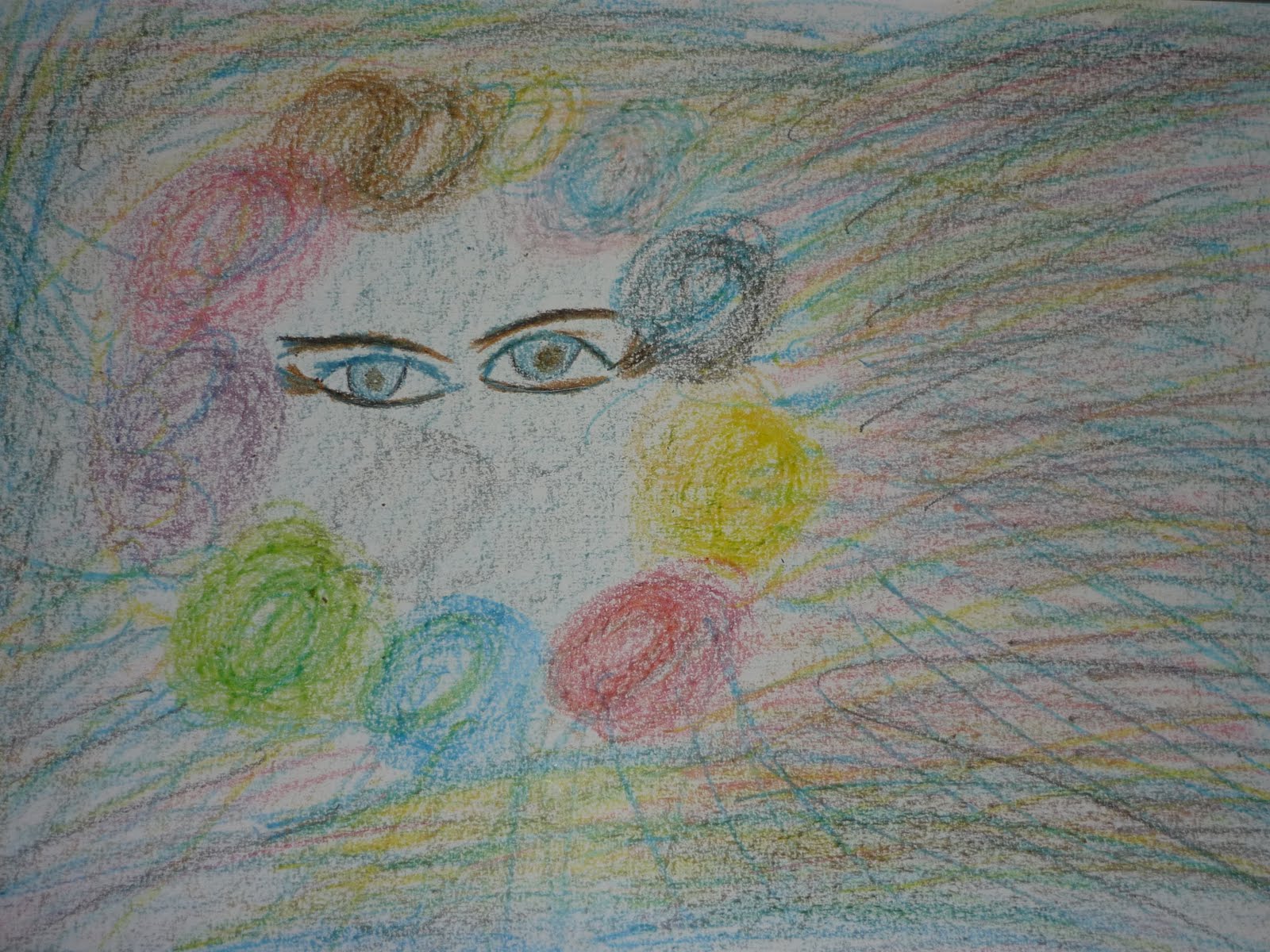 “Agora, aqui nesta sala, neste momento, eu me vejo e me sinto descrevendo minha escrita, como se eu fosse uma mutante que pudesse brincar, jogar com as cores em meu corpo, mudando de cor a cada estímulo, sensação ou provocação. Eu me chamo coreal por ter esta mutação. É como se eu tivesse uma aquarela dentro de mim.”